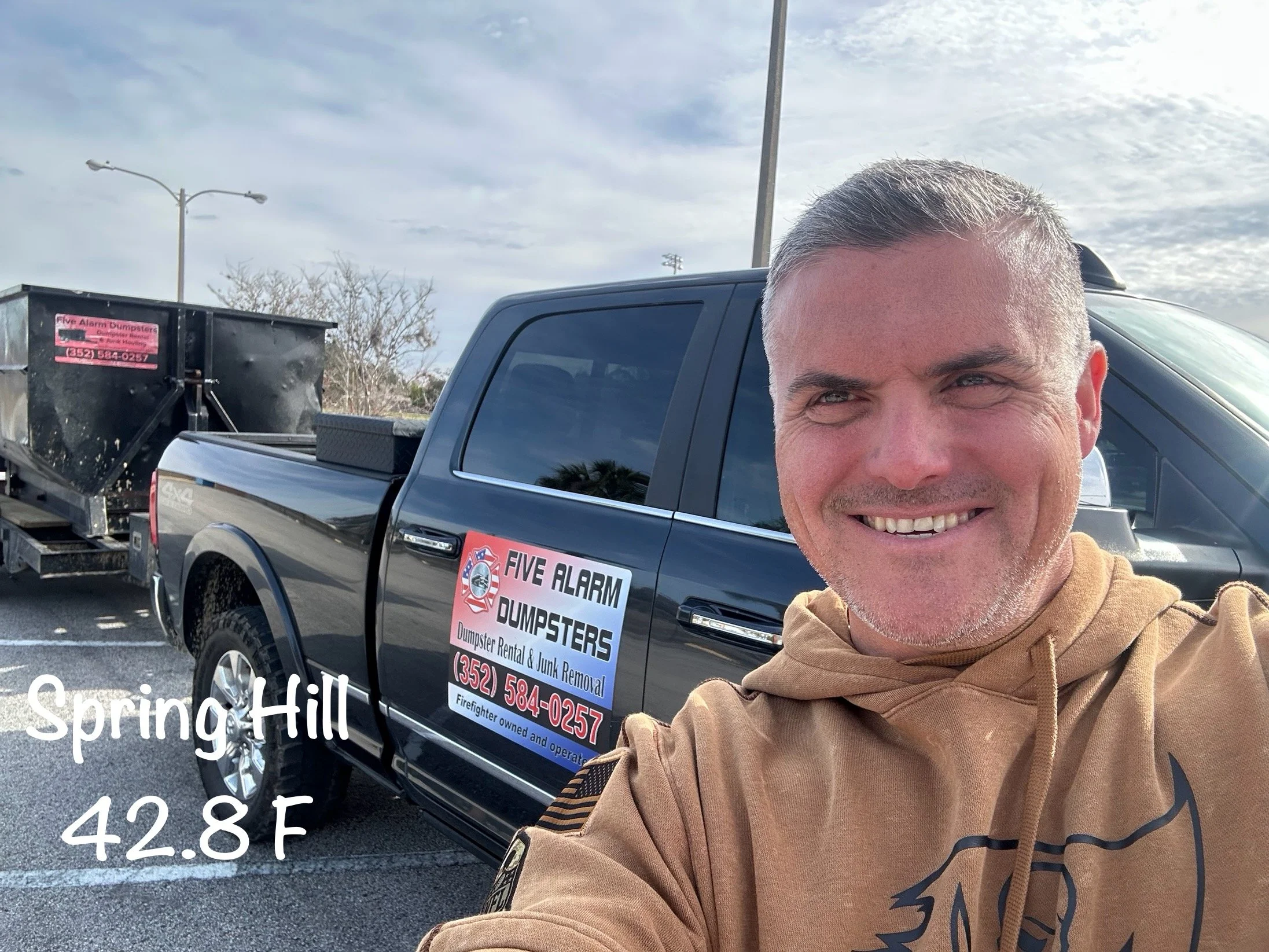 At Five Alarm Dumpsters, we’re more than just a dumpster rental company — we’re a firefighter-owned, family-run team that believes in serving our community with integrity, reliability, and respect. Based in Hernando County, we proudly serve homeowners, businesses, and contractors throughout Hernando, Pasco, and Citrus Counties.