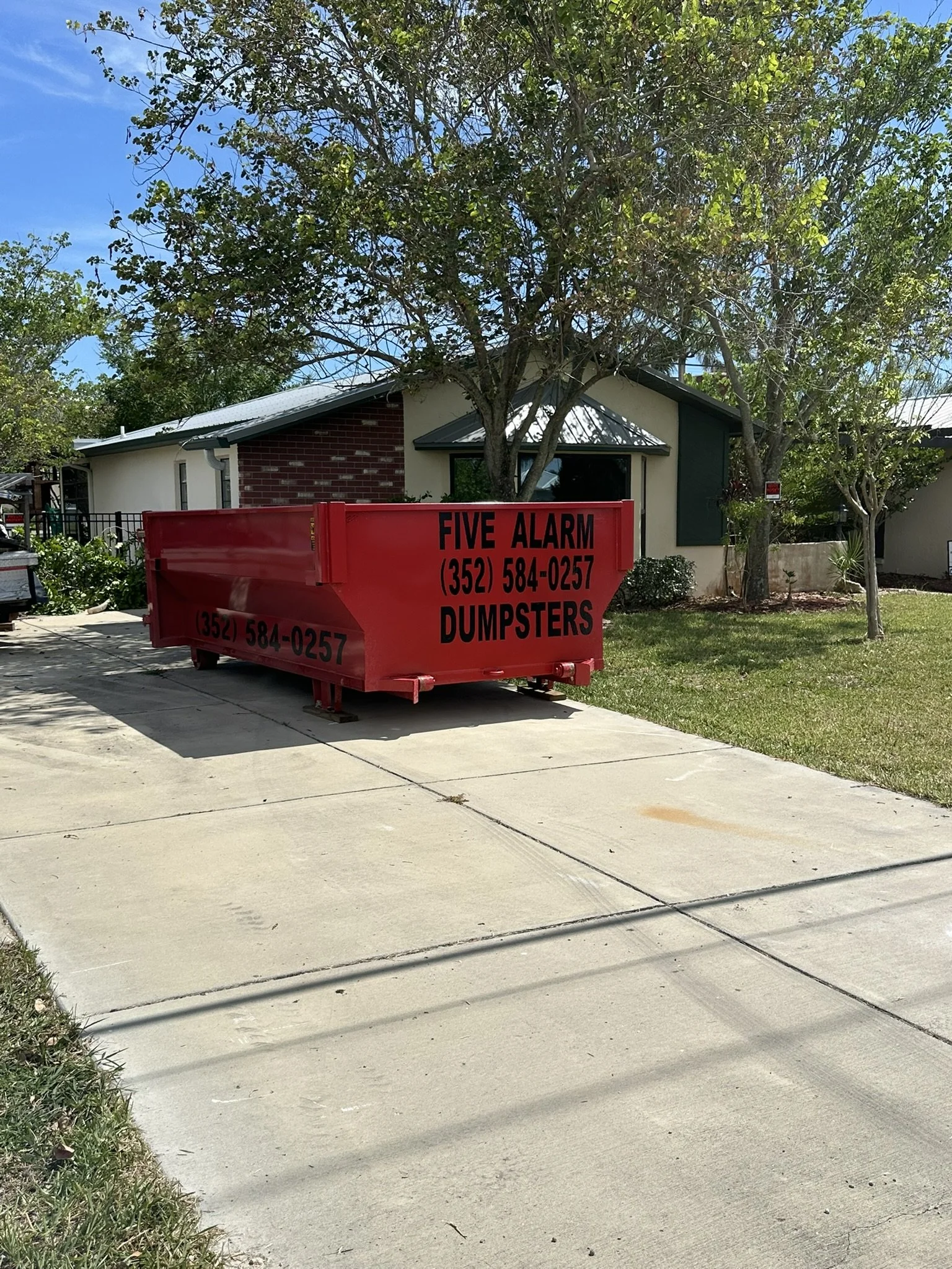 At Five Alarm Dumpsters, we offer both options to customers in Spring Hill and throughout Hernando County — so here’s a simple breakdown to help you decide which service fits your cleanup.